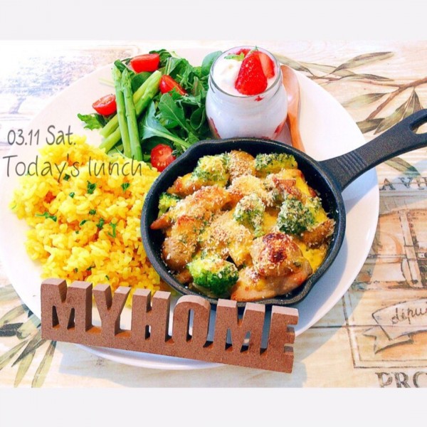 4. 2의 재료를 그릴 팬에 옮겨, 순서 3을 섞어 위에 빵가루를 적당량 뿌린다.