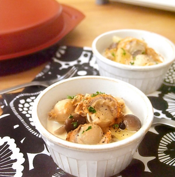 2. 베이비 가리비와 1의 재료를 그릴 팬에 넣는다.