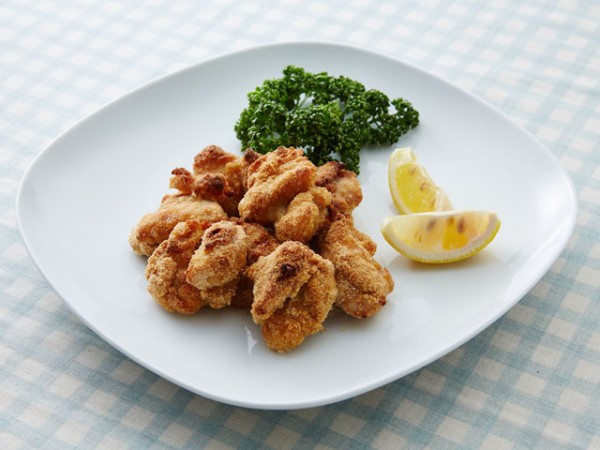 1. 닭고기에 튀김가루를 뿌려 표면에 잘 묻혀 둔다.