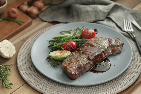 채끝과 가니쉬 야채를 얹어 280도에서 10분 구워준다.